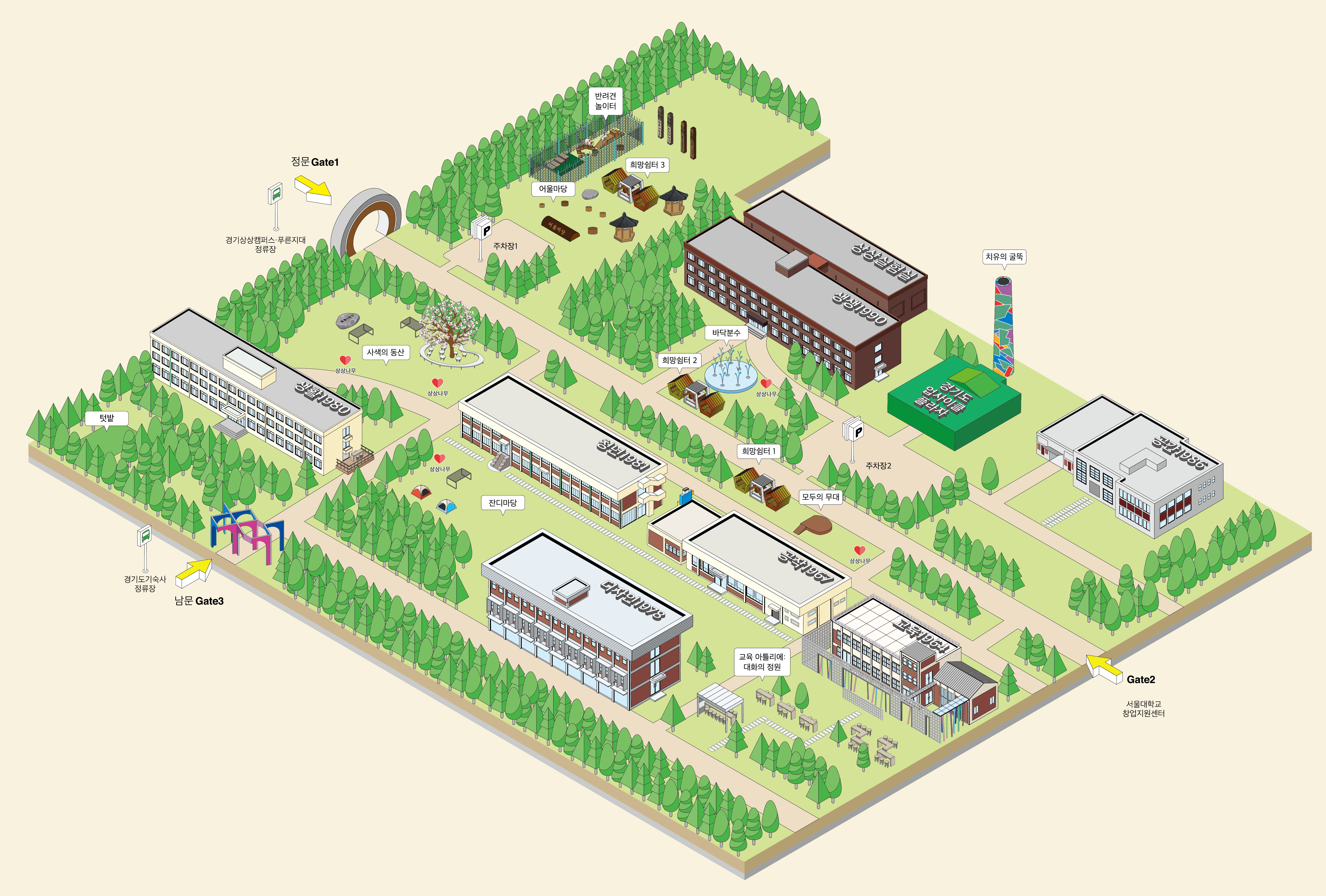 오래전 서울대학교 농업생명과학대학이 있던 캠퍼스의 꿈과 낭만이 가득했던 자리에 울창한 숲과 자연, 다양한 문화예술이 어우러진 복합문화공간 미래를 실험하고 삶의 문화를 창조하는 경기상상캠퍼스가 자리를 잡았는데요. 꿈과 미래를 펼치는 다양한 프로그램들이 운영되고 있습니다. 경기상상캠퍼스는 어떻게 운영되고 있는지 경기상상캠퍼스의 운영안내와 프로그램 신청 방법에 대해 안내해 드리겠습니다.
