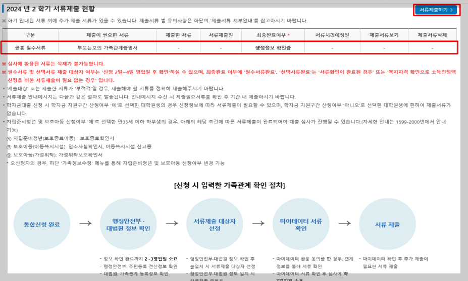 * 가구원 미동의 또는 서류제출 대상자의 서류가 제출되지 않은 경우 국가장학금 지원 불가