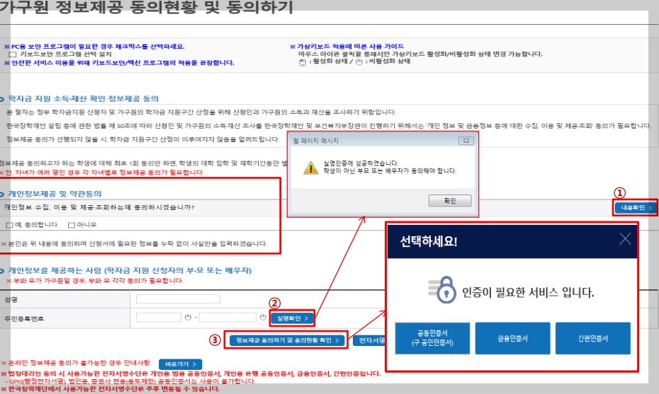 국가장학금 2차 가구원 동의 절차