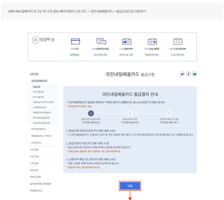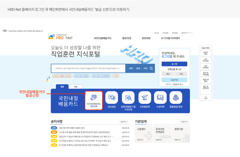 - 가까운 고용센터를 방문하거나 HRD-Net을 통해 신청