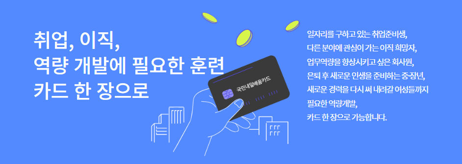 급격한 기술의 발전에 적응하고 노동시장 변화에 대응하는 사회안전망 차원에서 생애에 걸친 역량개발 향상 등을 위해 국민 스스로 직업능력개발훈련을 실시할 수 있도록 훈련비를 등을 지원하는 국민내일배움카드를 아직 잘 모르시는 분들이 계시는데요. 국민내일배움카드 지원대상과 지원내용, 신청방법은 어떻게 되는지 알아보겠습니다.