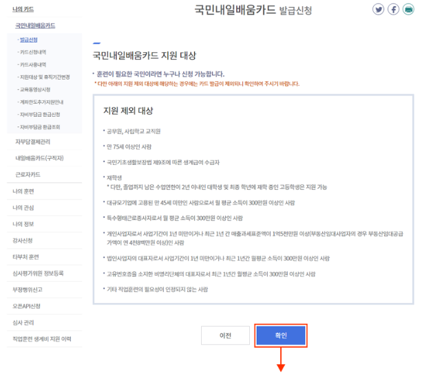 * 정부지원 훈련과정을 수강 중인 사람 등은 지원 대상에서 제외될 수 있음