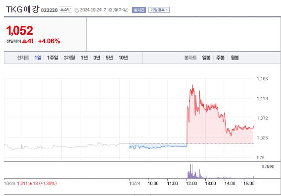 - TKG애강은 금속 파이프, 금속판재, 건축용 금속재를 제조하는 금속 가공 제조업체로, 고품질 금속 가공 기술로 국내외 시장에서 인지도를 높이고 있으며 건축 및 산업용 금속재 분야에서도 강세를 보이고 있습니다. TKG애강은 금속 가공 및 소재 부품 제조 분야에서 강세를 보이고 있어 금값 상승에 따른 원자재 가치 상승으로 수익성 개선이 기대됩니다.