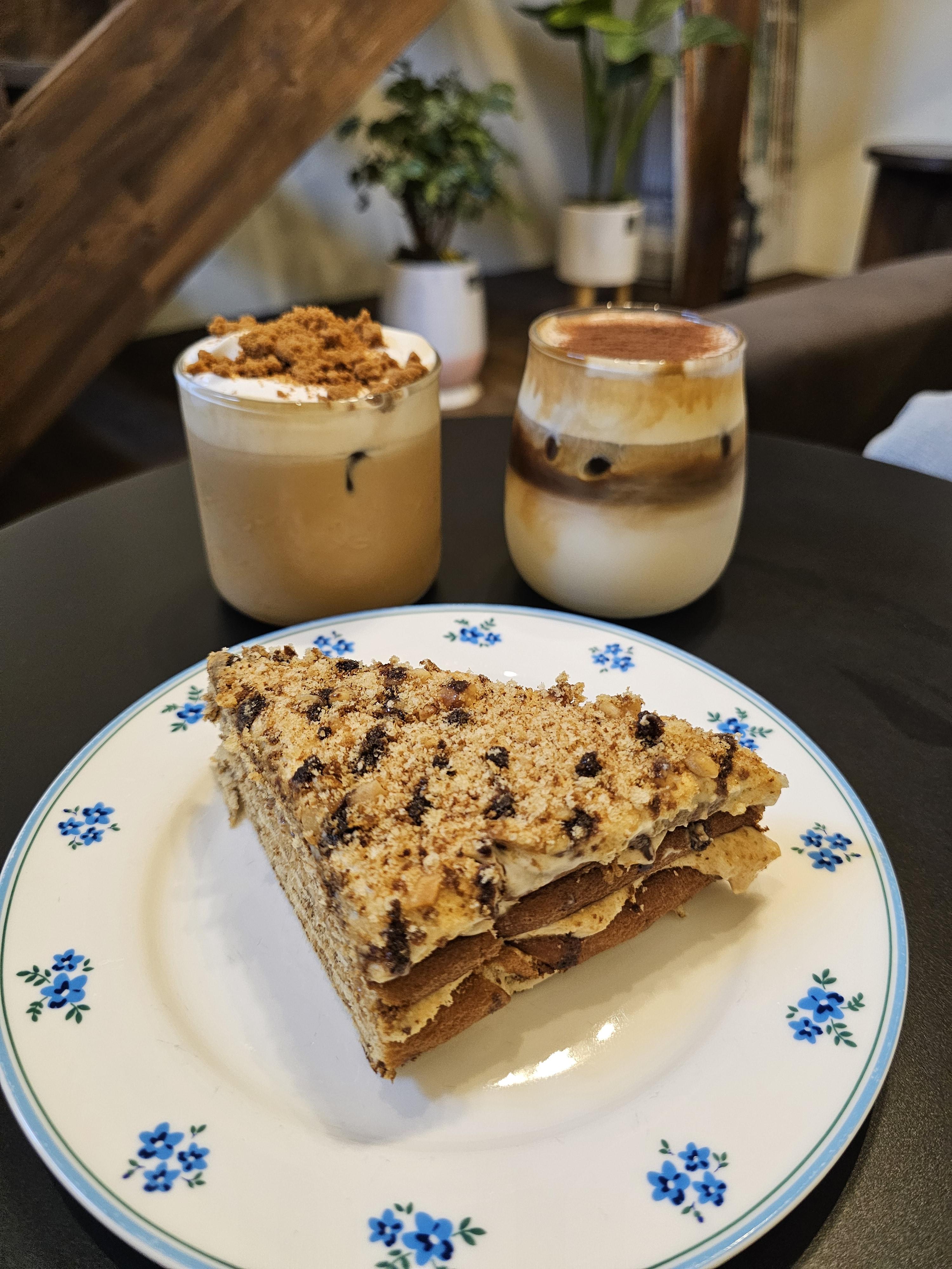 여행을 간거라 그냥 커피보다는 시그니처 메뉴인 온휴라떼와 땅콩카라멜라떼, 말렌카 조각케익 월넛을 주문해서 먹었는데, 셋다 모두 맛있었습니다. 특히 말렌카 조각케익이 달달하니 너무 맛있어서 순식간에 다 먹을 정도로 너무 만족스러웠습니다.