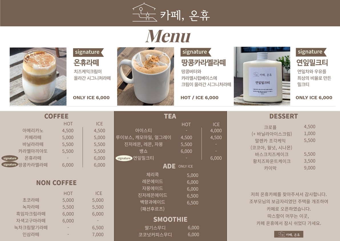 - 온휴라떼 : 6,000원 ★주문메뉴