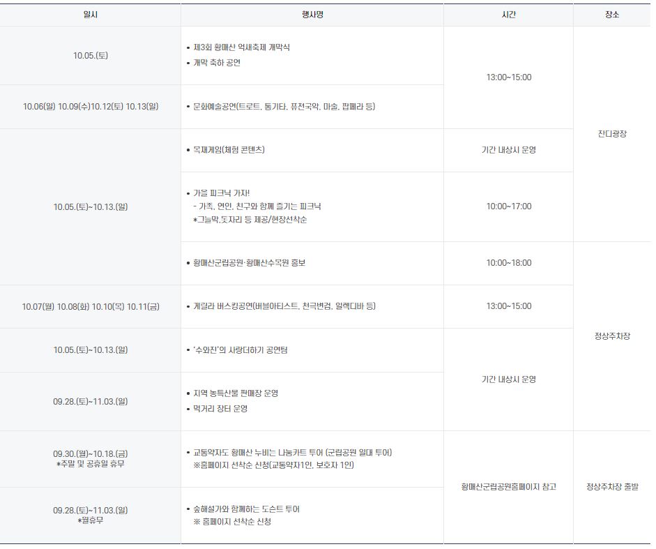 ※ 축제기간(10월 5일(토) ~ 10월 13일(일)만 운영)